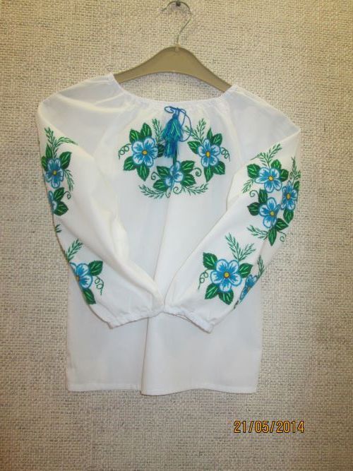 Разом з дочками я вже вишила не одну вишивку на сорочку та жіноче плаття. В основному, моя родина і я, користуємось вишивкою власного ручного вишивання.